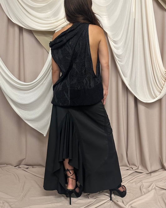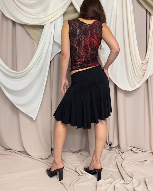 BLACK AND RED LACE VEST WITH ASYMMETRICAL NECKLINE by Plein Sud