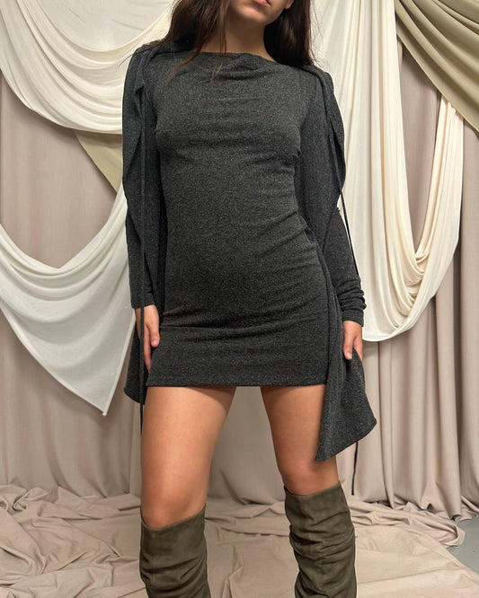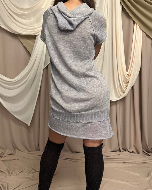 SEMI SHEER HOODED METALLIC KNIT MINI DRESS by Sarah Pacini