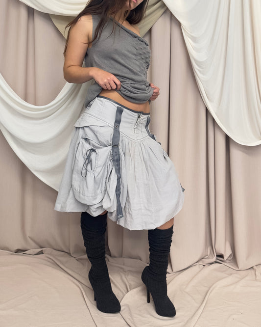 COTTON RUCHED BUBBLE SKIRT WITH UTILITARIAN DETAILS by Marithé + François Girbaud