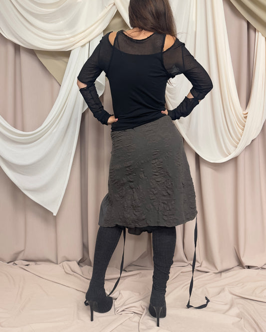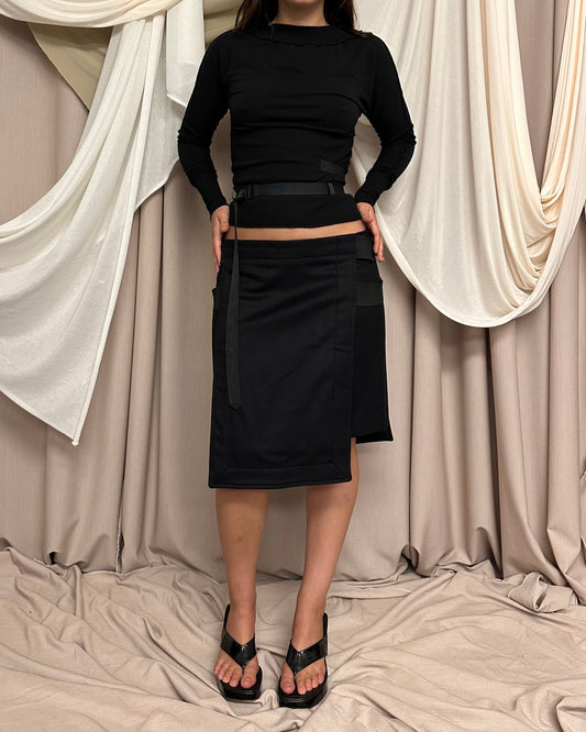 WOOL MIDI SKIRT WITH ELASTICATED UTILITY STRAPS by Armani