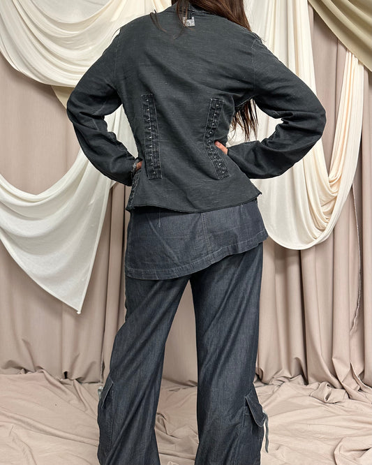 CROPPED ASYMMETRICAL JACKET WITH HARNESS DETAIL