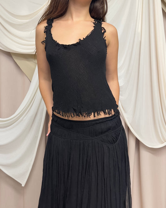BLACK TANK TOP WITH DISTRESSED HEMS