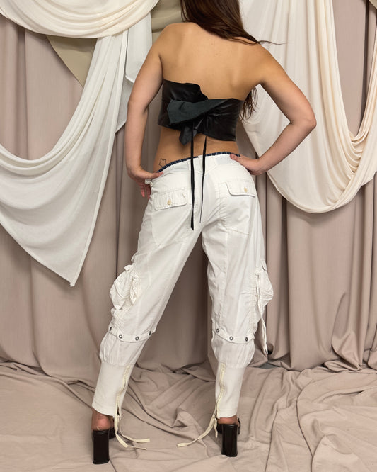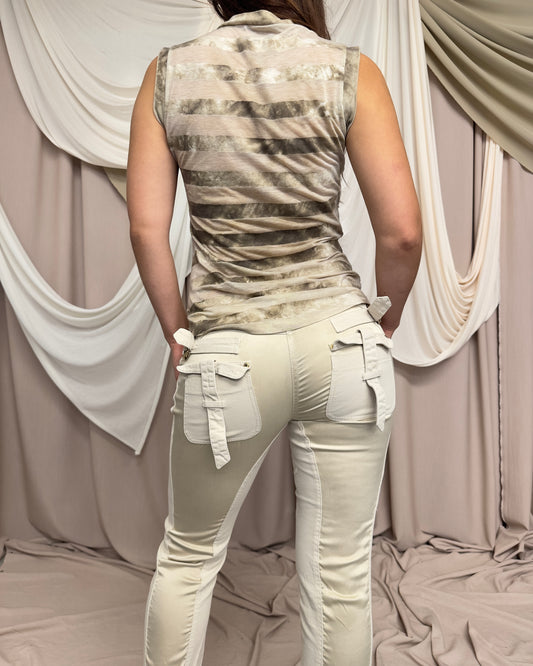WHITE STRETCH CAMI WITH UTILITY STYLE METAL CLOSURES by Marithé + François Girbaud