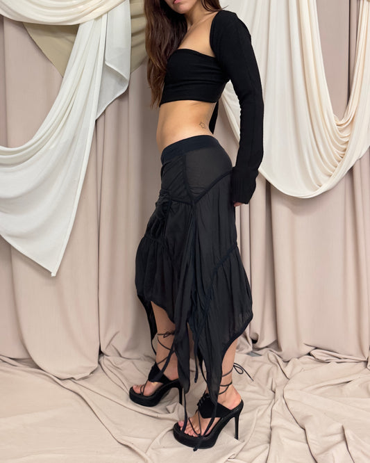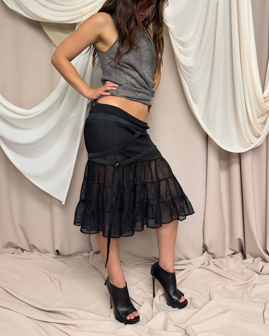 BLACK TIERED SEMI SHEER PARACHUTE MIDI SKIRT by Cop Copine