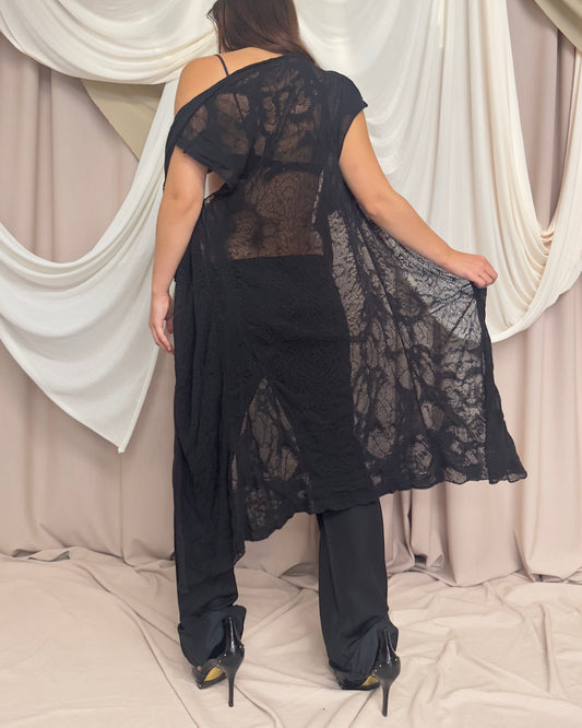 TEXTURED KNIT TUNIC / WIDE FIT VEST WITH DEEP SIDE SLITS by Sarah Pacini