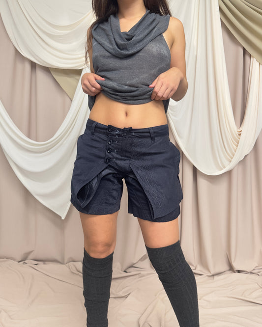 NAVY PATTERNED SHORTS WITH DECONSTRUCTED PANELS by Marithé + François Girbaud