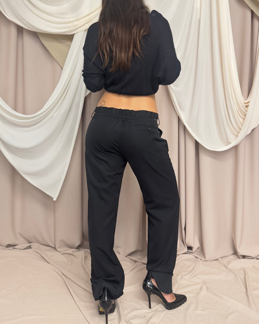 BLACK STRAIGHT LEG TROUSERS WITH LEATHER CLOSURE by Plein Sud