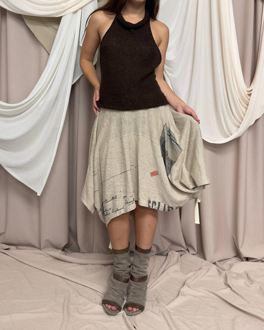 OATMEAL KNIT PONCHO / SKIRT WITH GRAPHIC PRINT