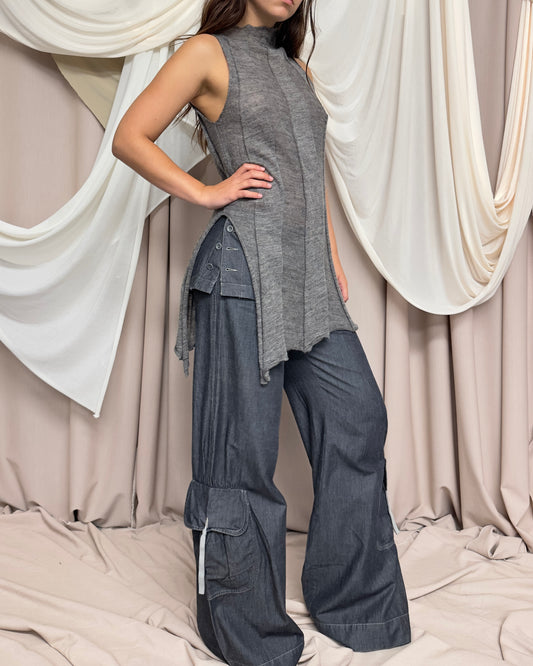 GREY LIGHTWEIGHT LONGLINE KNIT VEST by Sarah Pacini