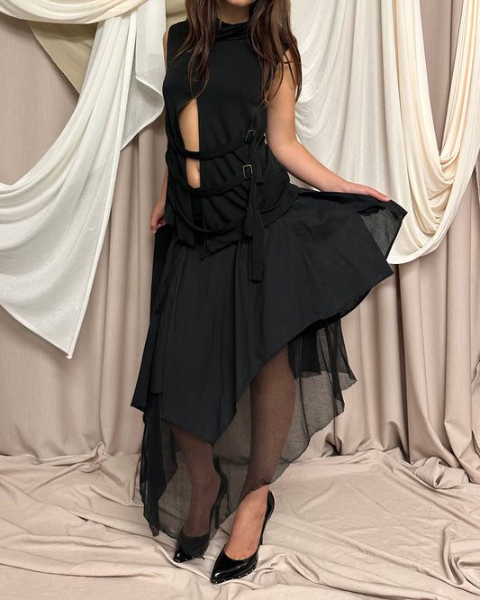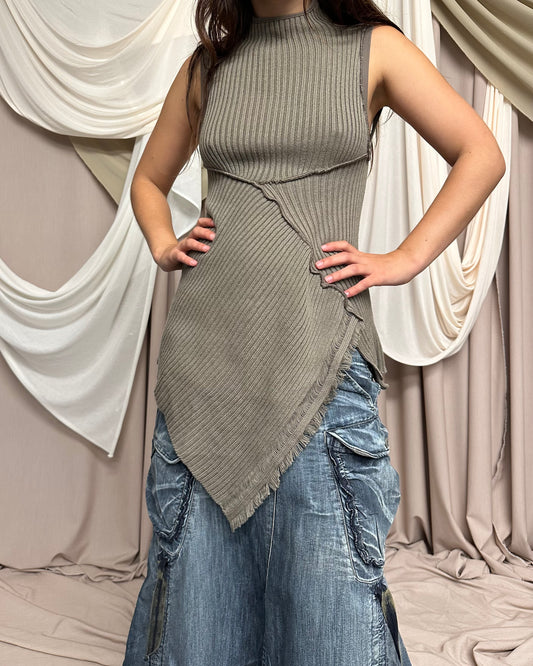 BACKLESS HIGH NECK VEST WITH DISTRESSED ASYMMETRICAL HEMLINE by Cop Copine