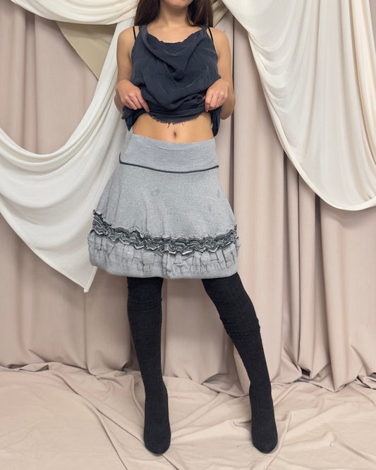 GREY KNIT BUBBLE SKIRT WITH RUFFLED DETAILS by Marithé + François Girbaud