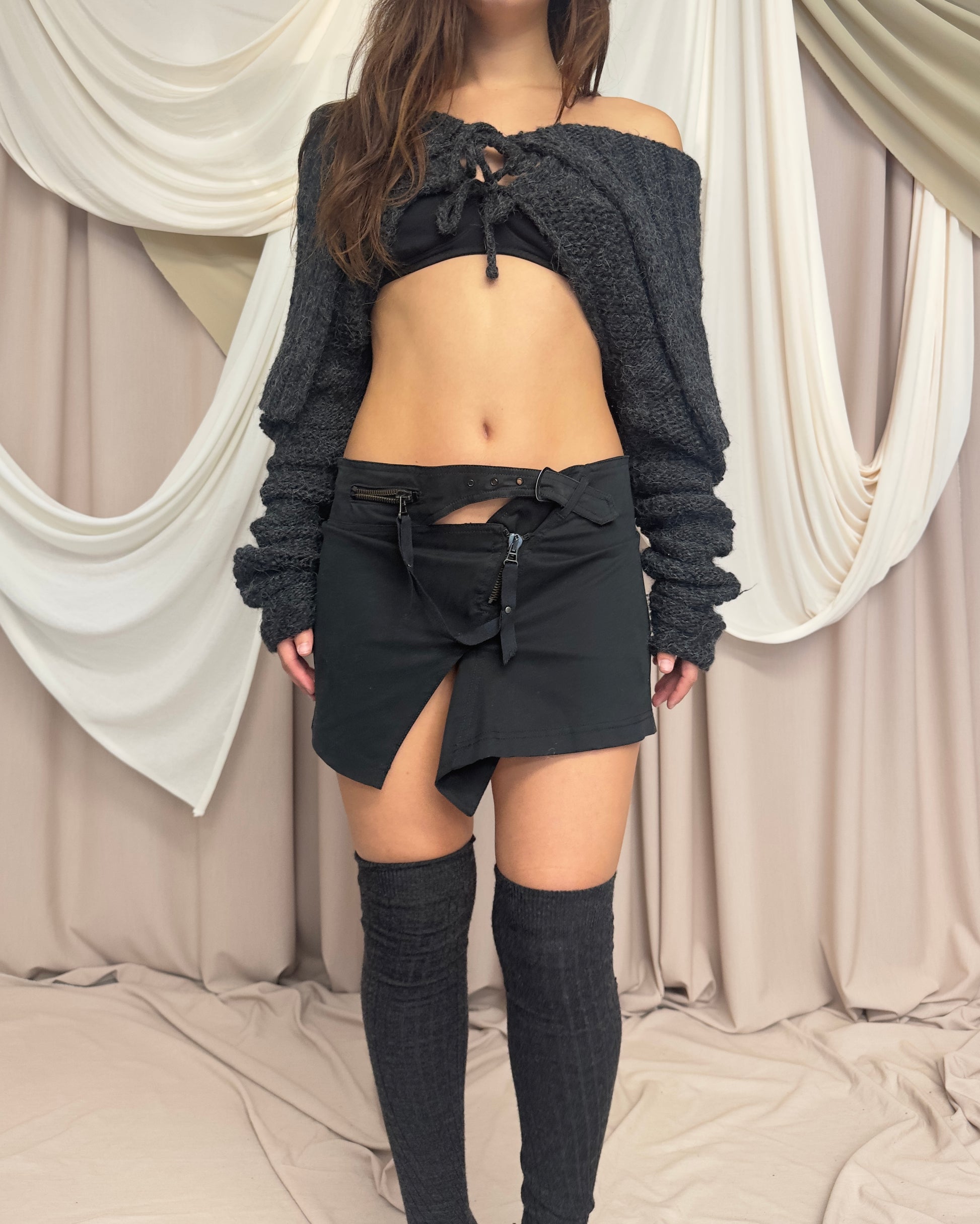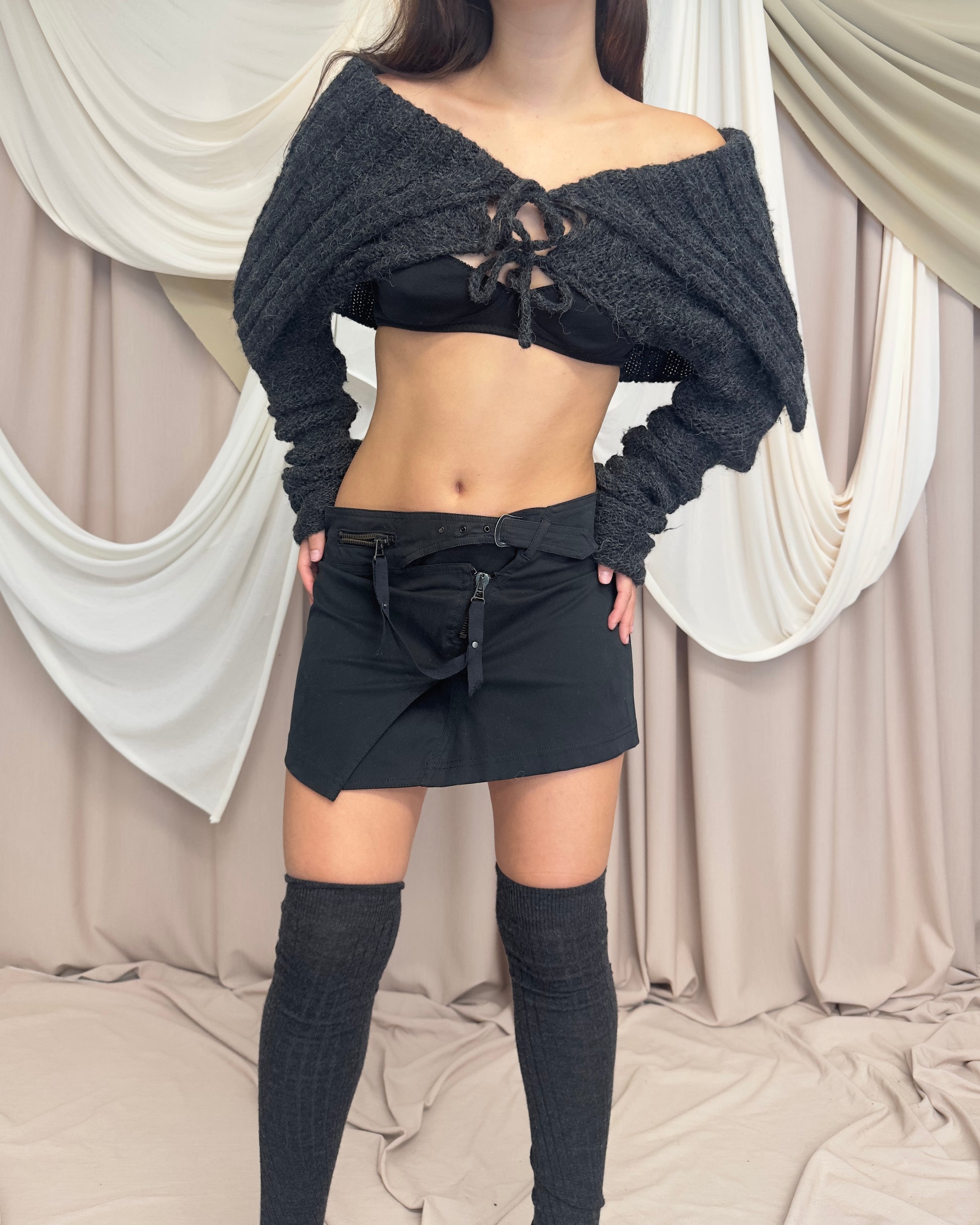 GREY OFF SHOULDER CROPPED KNIT SHRUG by Sarah Pacini