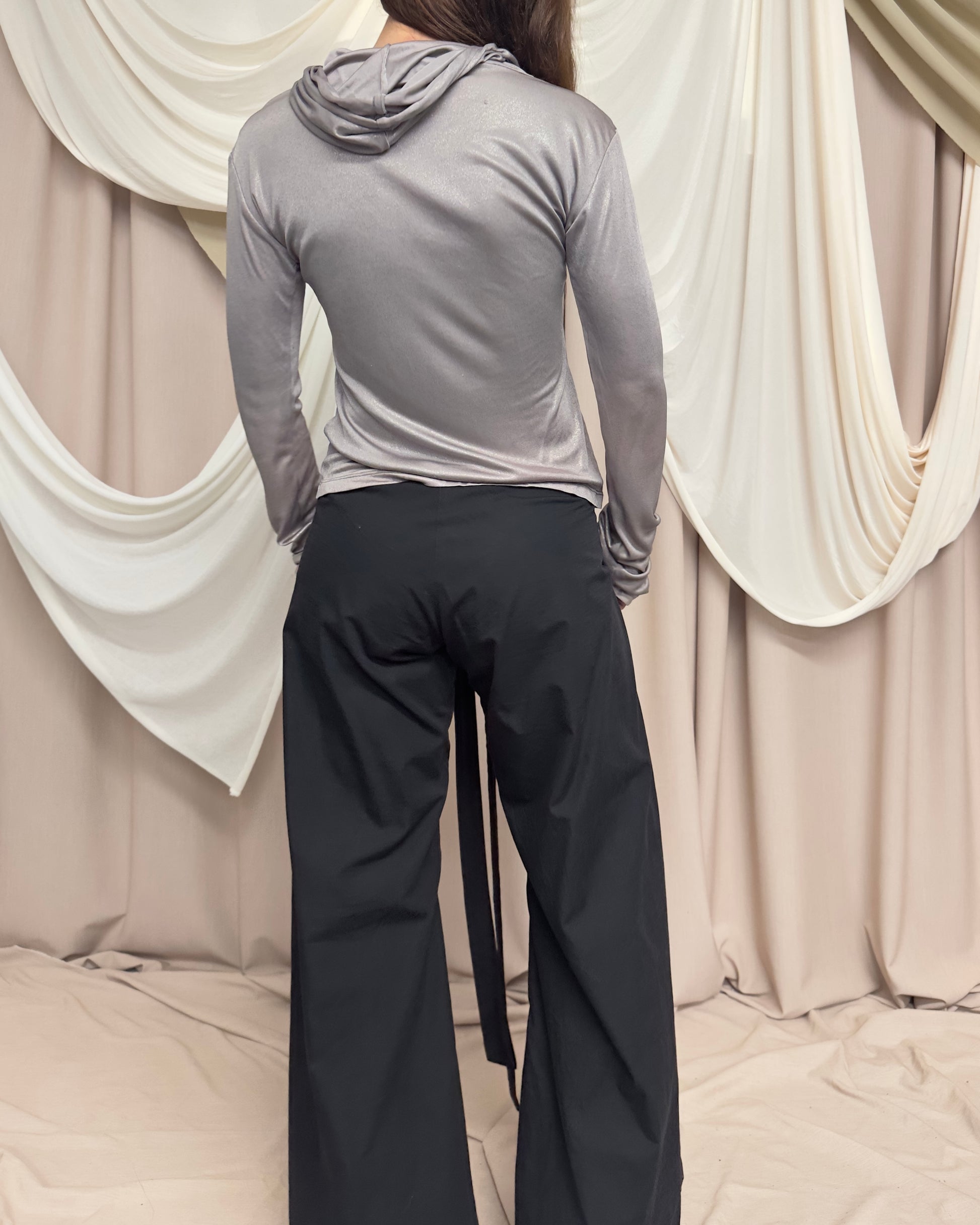 METALLIC HOODED LONG SLEEVE TOP by Marithé + François Girbaud