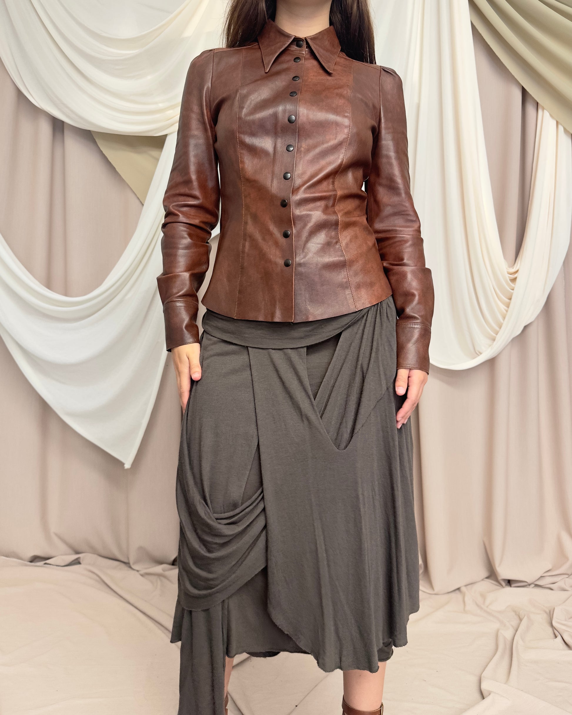 LEATHER SHIRT / JACKET WITH RAW CUT HEM AND POINTED COLLAR by Plein Sud